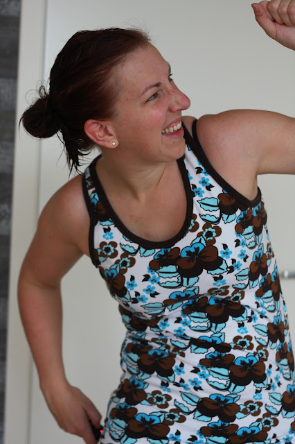 Jeg har ikke gjort noen endringer på mønsteret bortsett fra at jeg droppet vlieselin på midjebåndet og at jeg sydde vanlig ribb rundt halsen (jeg klippet ribben 65 x 5 cm og synes det ble bra til str 38), også uten vlieselin.